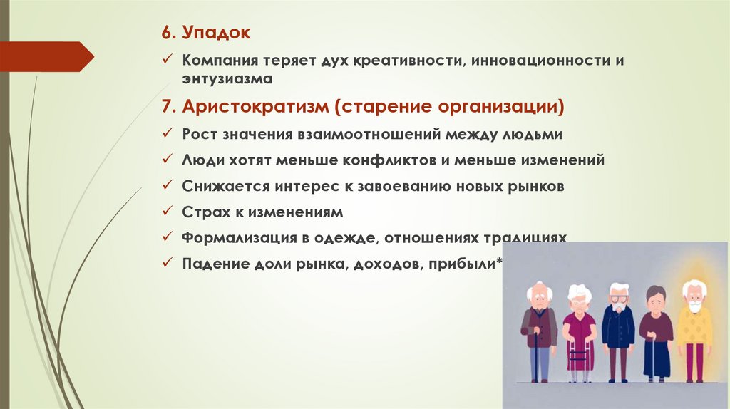 6. УпадокКомпания теряет дух креативности, инновационности и