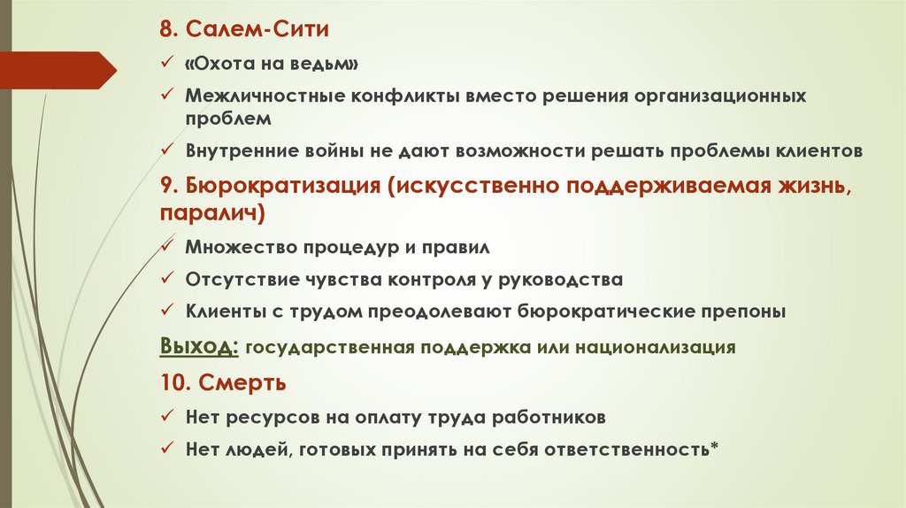 9. Бюрократизация (искусственно поддерживаемая жизнь,