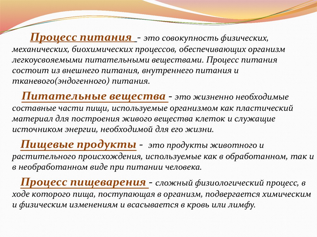 Процесс питания - это совокупность физических,механических, биохимических процессов, обеспечивающих организм