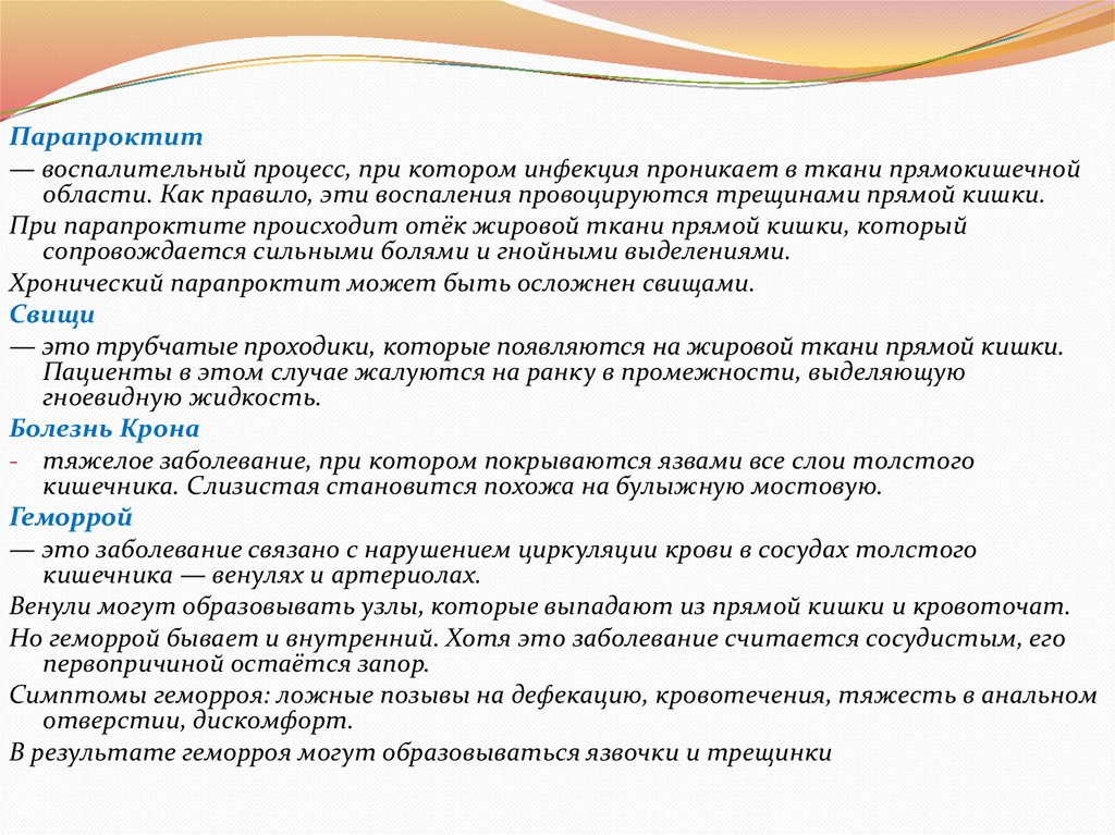 Парапроктит— воспалительный процесс, при котором инфекция проникает в ткани прямокишечной