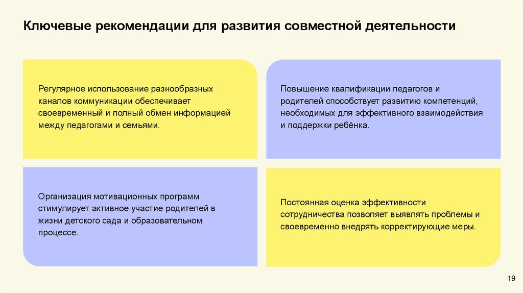 Ключевые рекомендации для развития совместной деятельностиРегулярное использование разнообразных