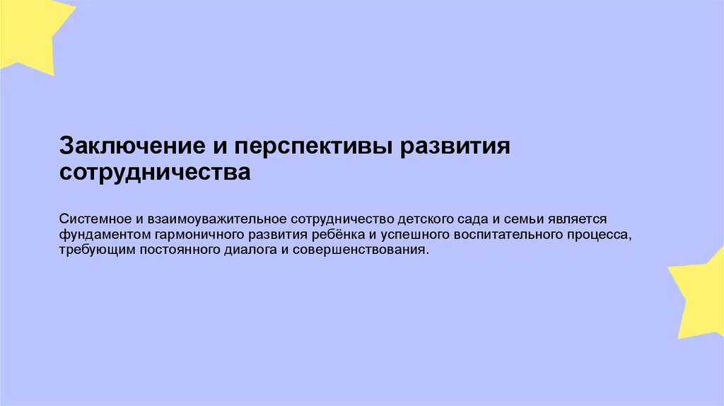 Системное и взаимоуважительное сотрудничество детского сада и семьи является