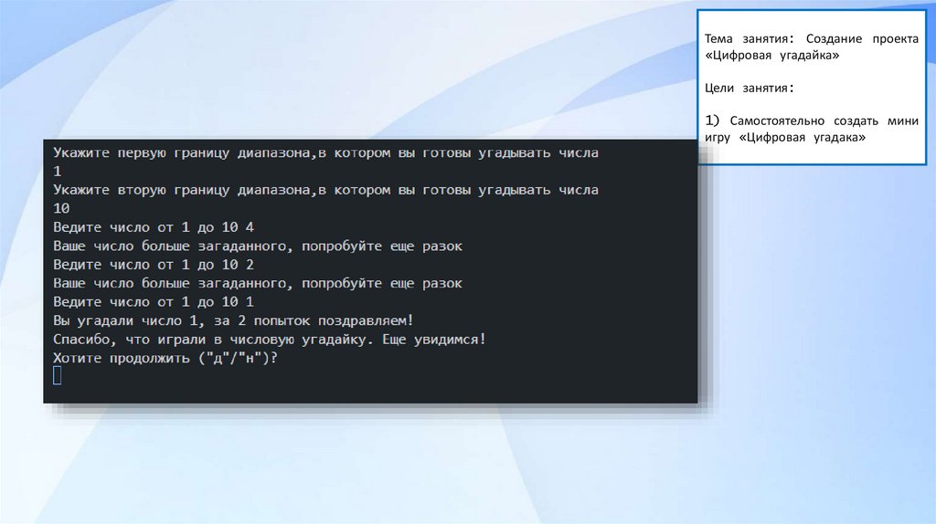 Тема занятия: Создание проекта«Цифровая угадайка»