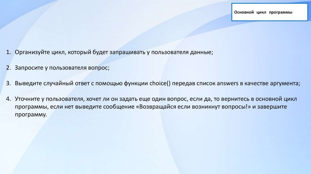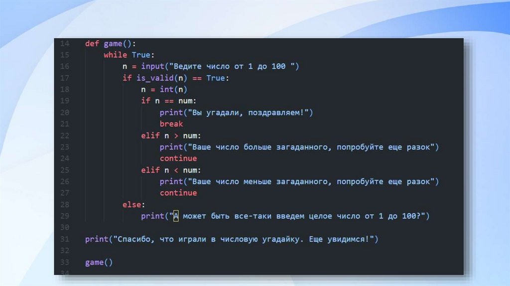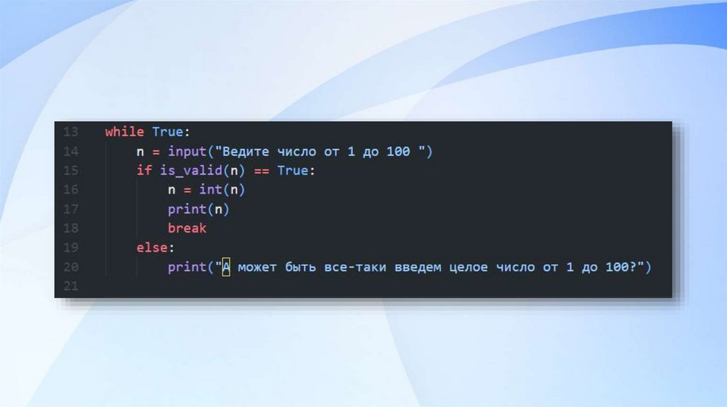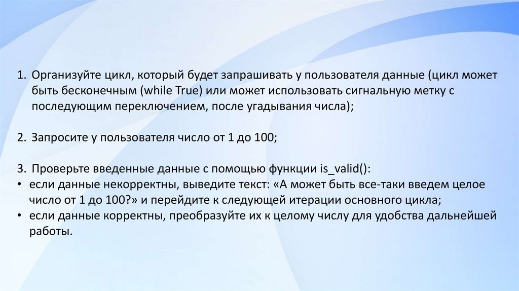 число от 1 до 100?» и перейдите к следующей итерации основного цикла;
