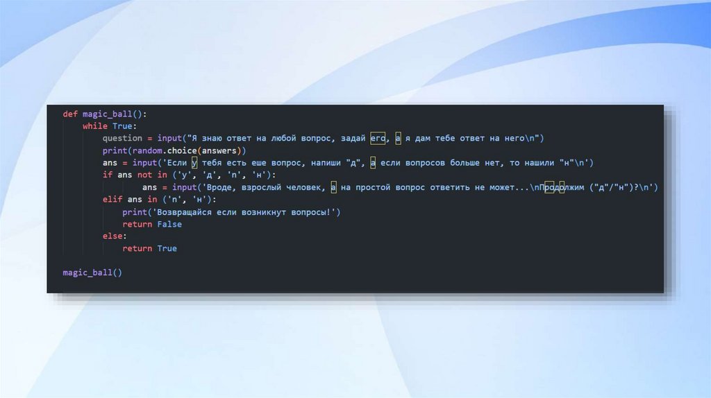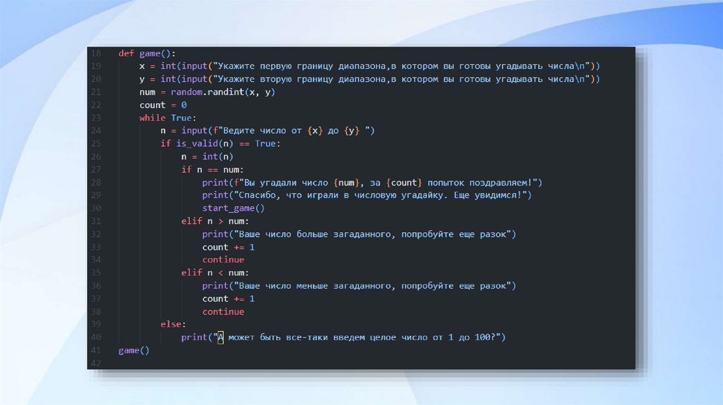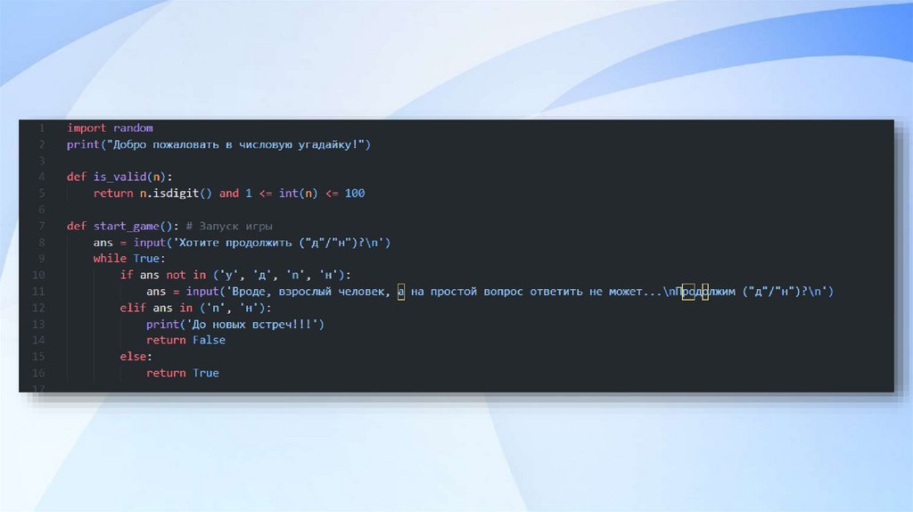попробуйте еще раз». Если пользователь угадывает число, то программа должна