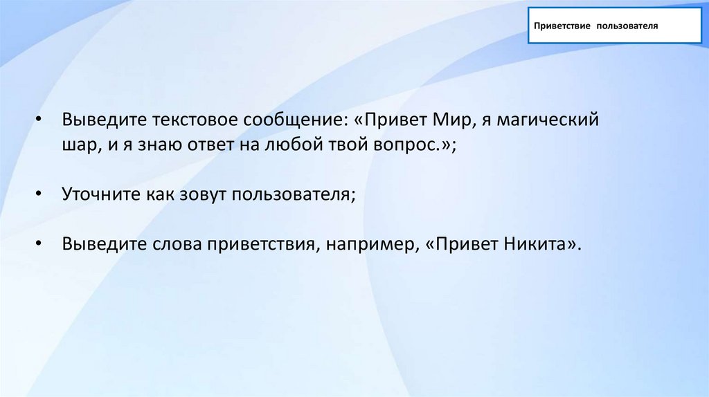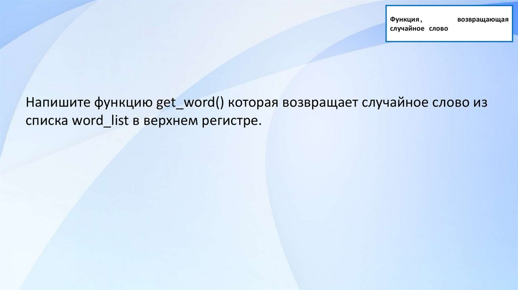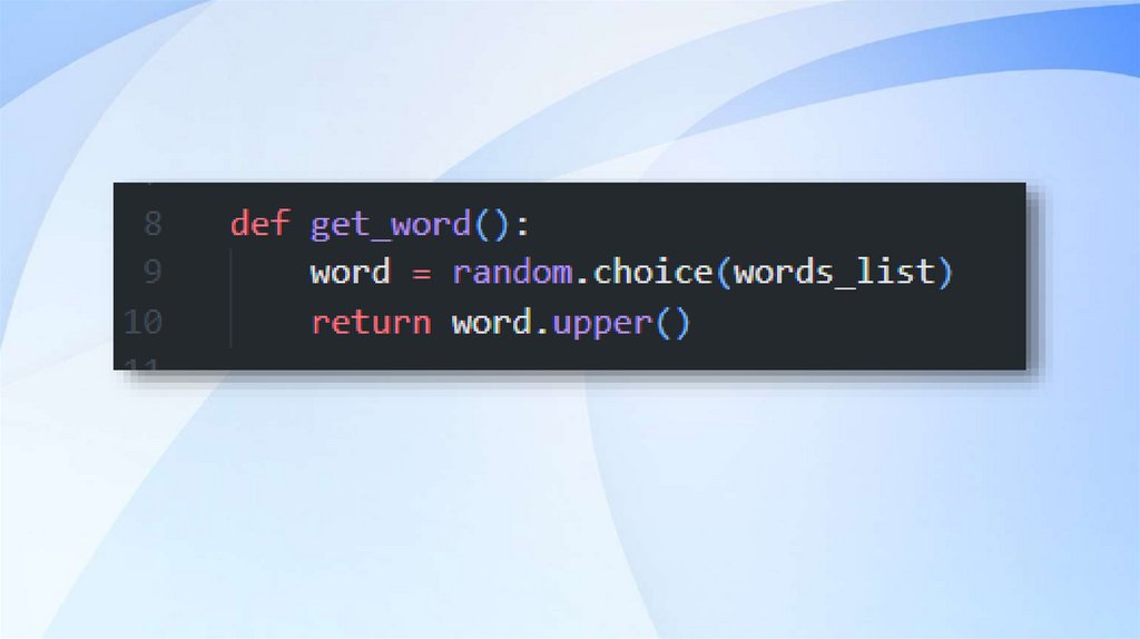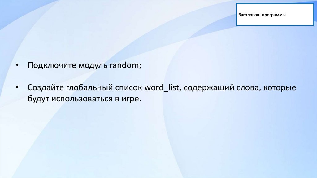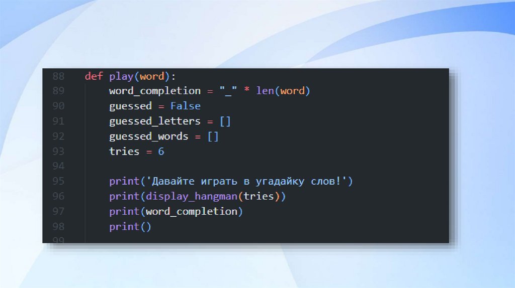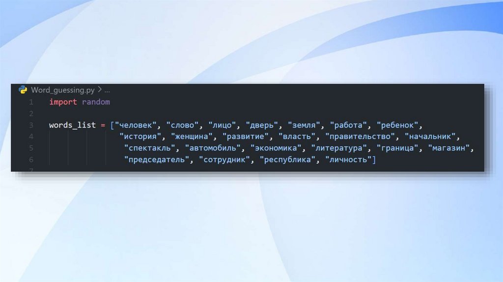 • отобразить текст «Давайте играть в угадайку слов!»;