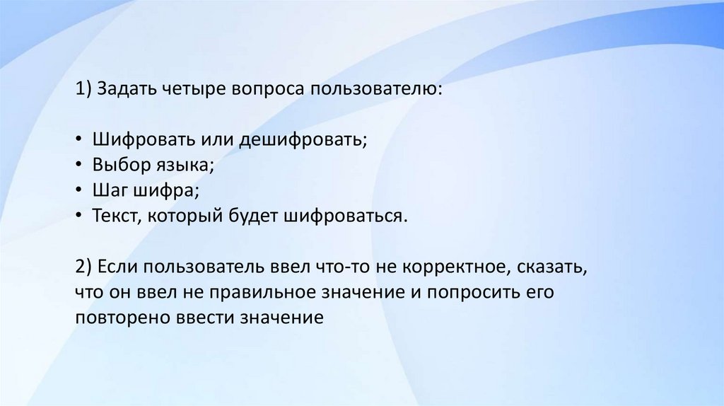 Сравниваем, что ввел пользователь дешифровать или шифровать.Если дешифровать, то:
