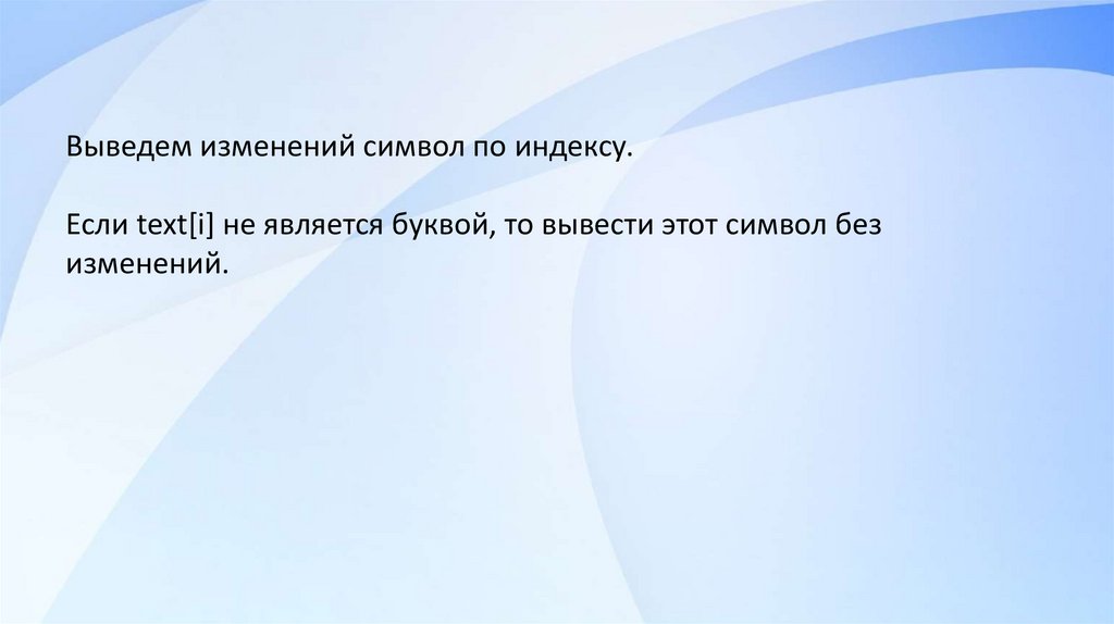 Выведем изменений символ по индексу.Если text[i] не является буквой, то вывести этот символ без