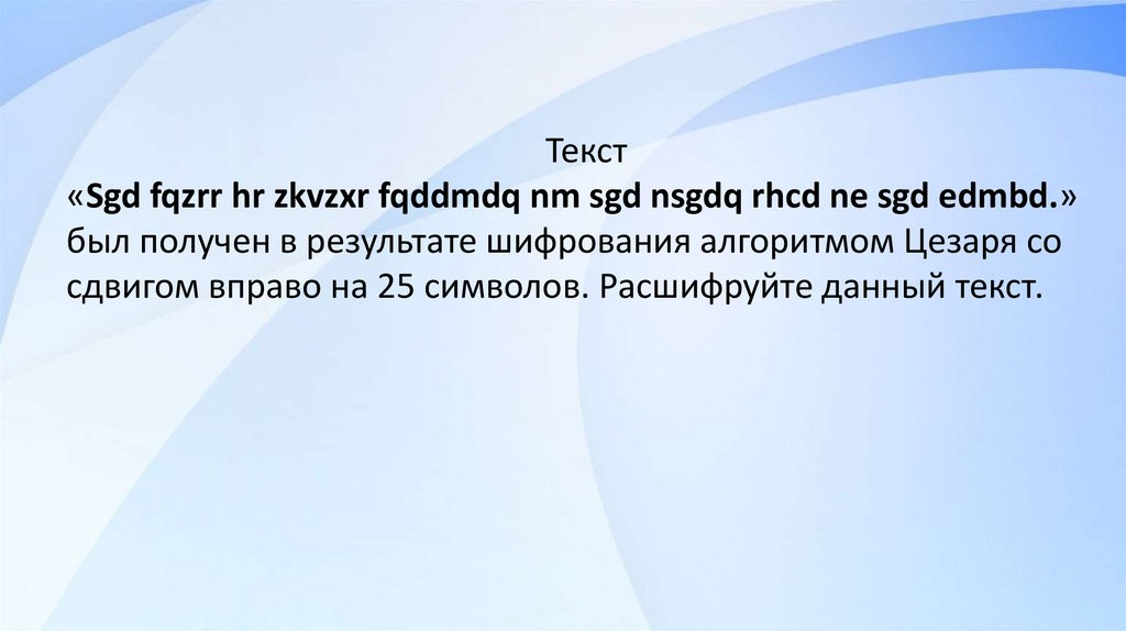 сдвигом вправо на 25 символов. Расшифруйте данный текст.