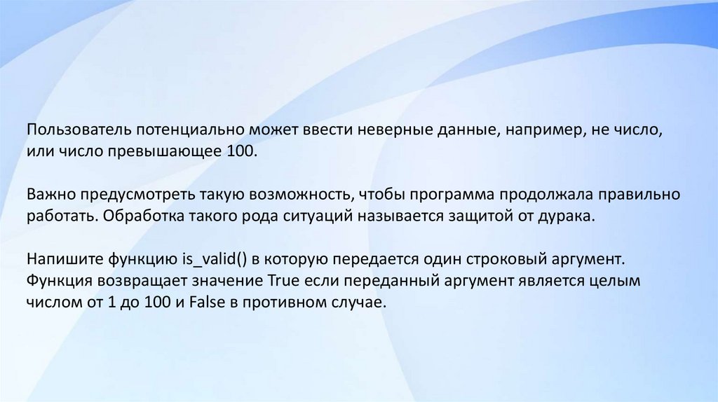 Важно предусмотреть такую возможность, чтобы программа продолжала правильно