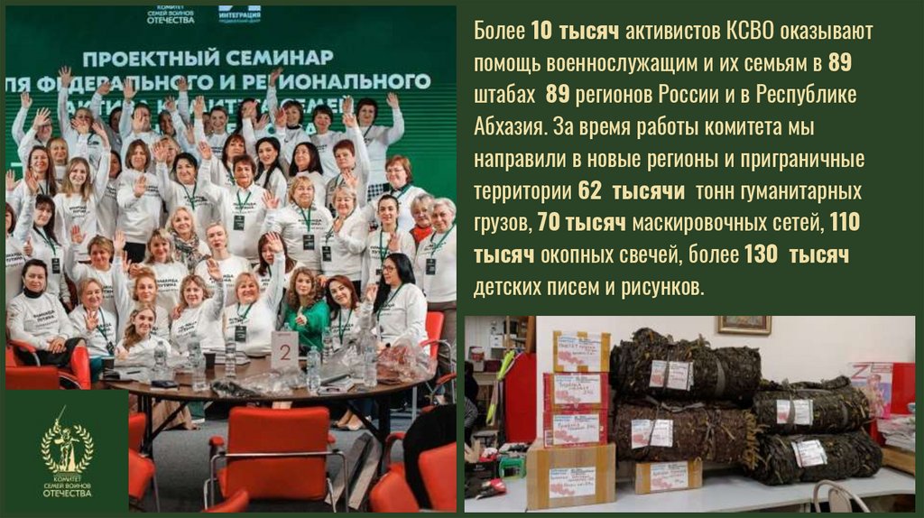 Более 10 тысяч активистов КСВО оказываютпомощь военнослужащим и их семьям в 89