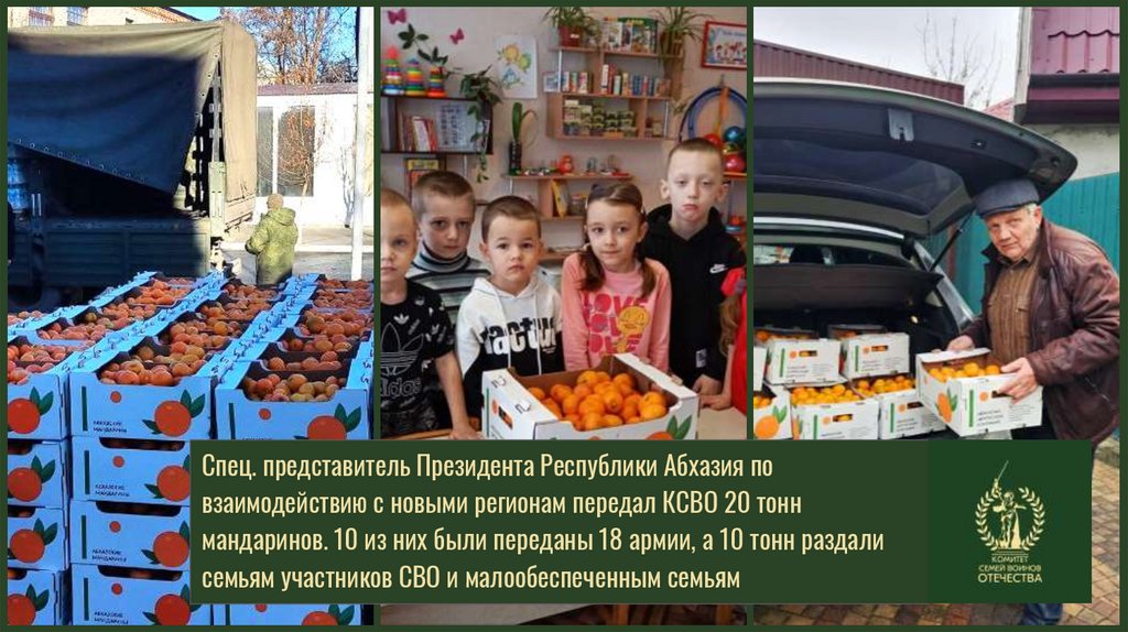 мандаринов. 10 из них были переданы 18 армии, а 10 тонн раздали