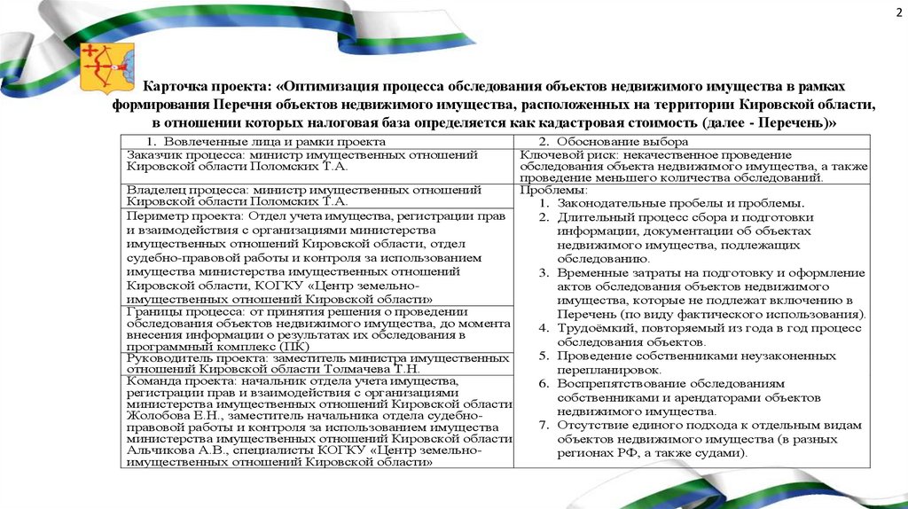 2Карточка проекта: «Оптимизация процесса обследования объектов недвижимого имущества в рамках