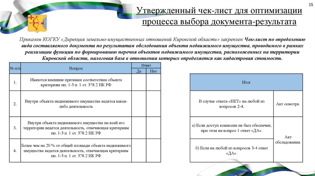 Приказом КОГКУ «Дирекция земельно-имущественных отношений Кировской области» закреплен Чек-лист по определению