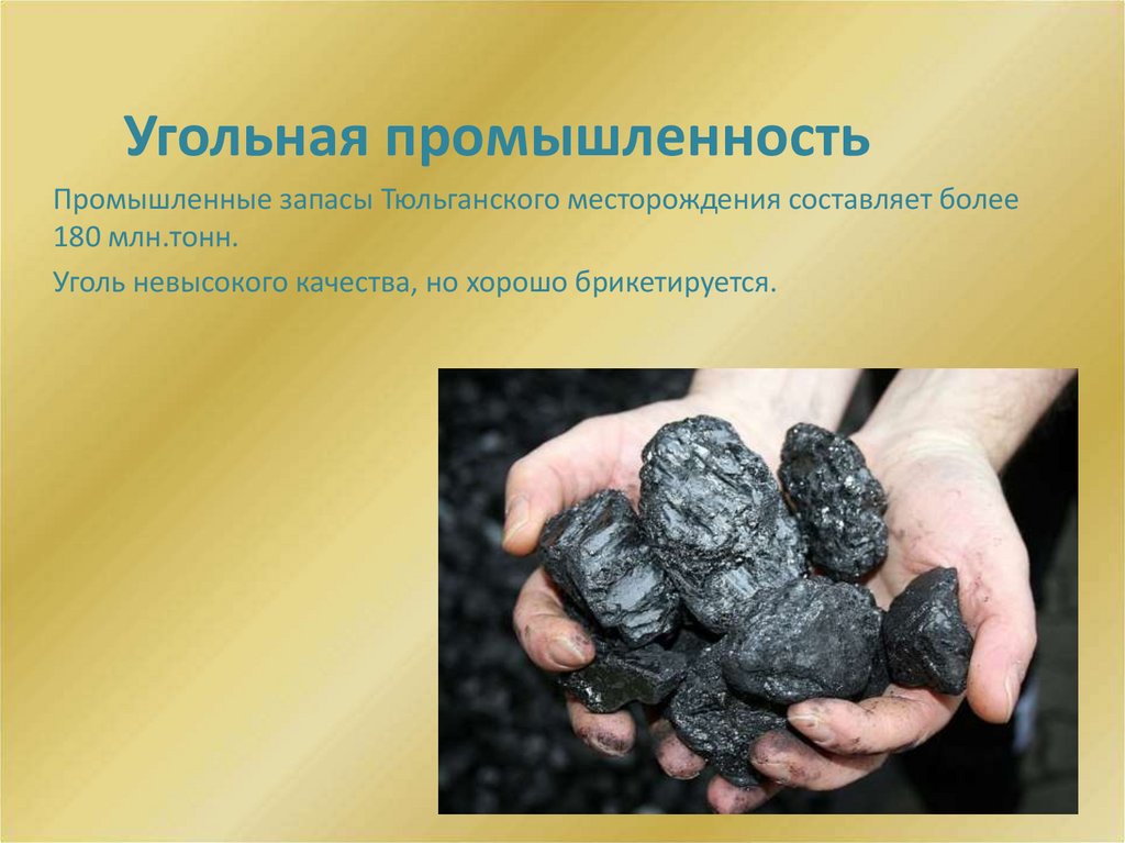 Угольная промышленностьПромышленные запасы Тюльганского месторождения составляет более