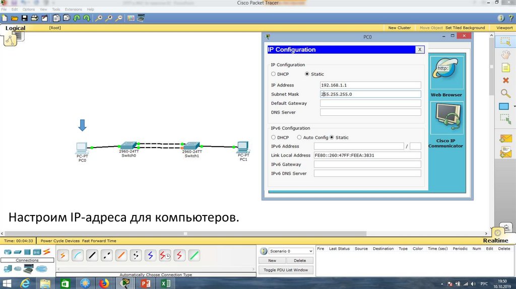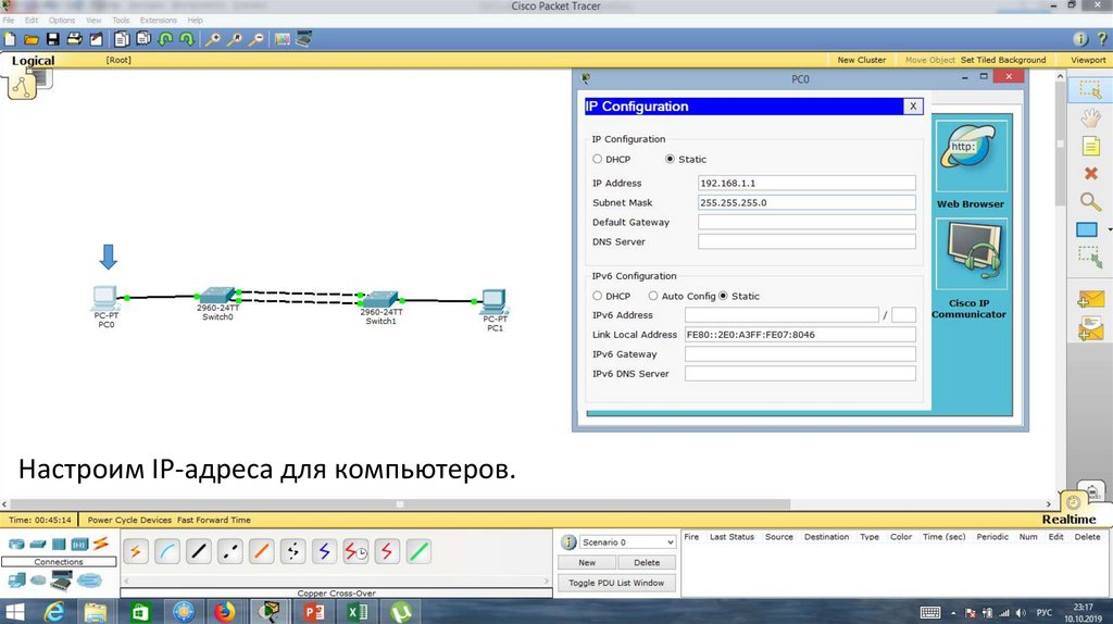 Настроим IP-адреса для компьютеров.16.