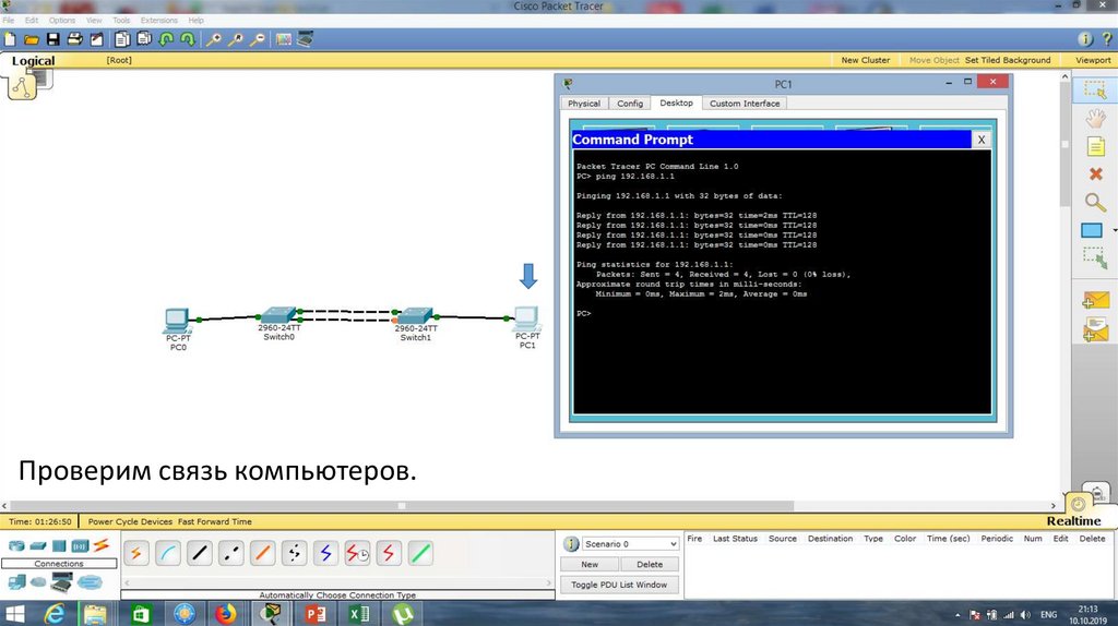 Проверим связь компьютеров.18.