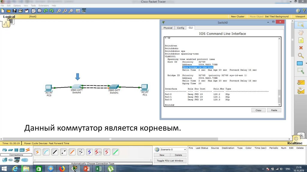 Данный коммутатор является корневым.19.