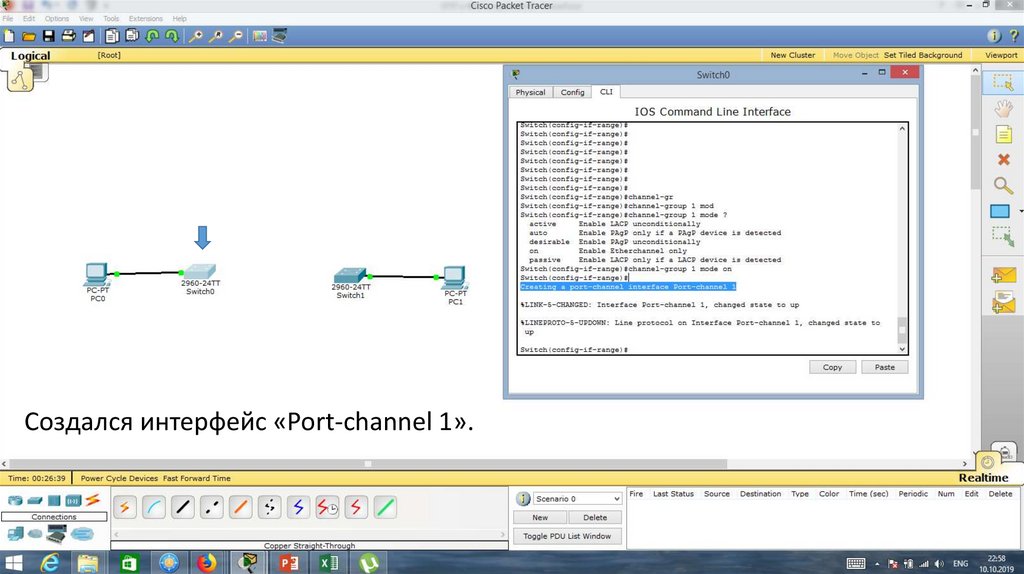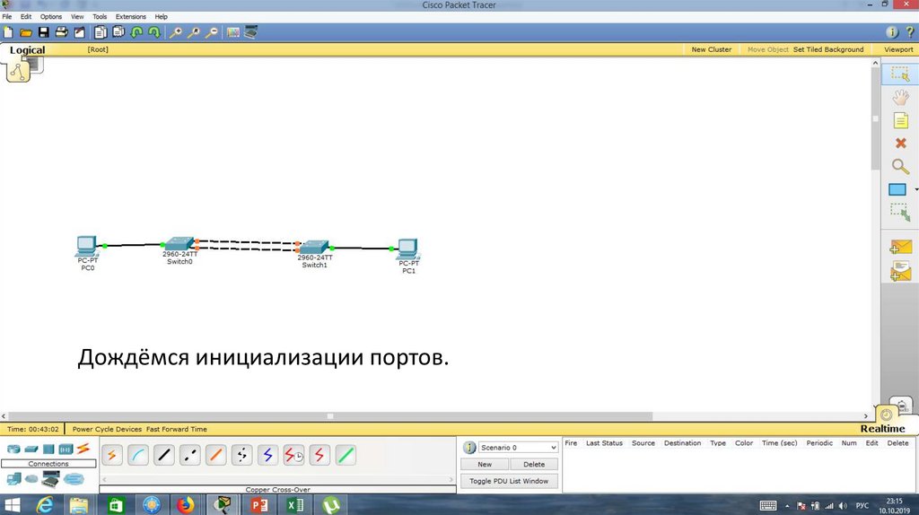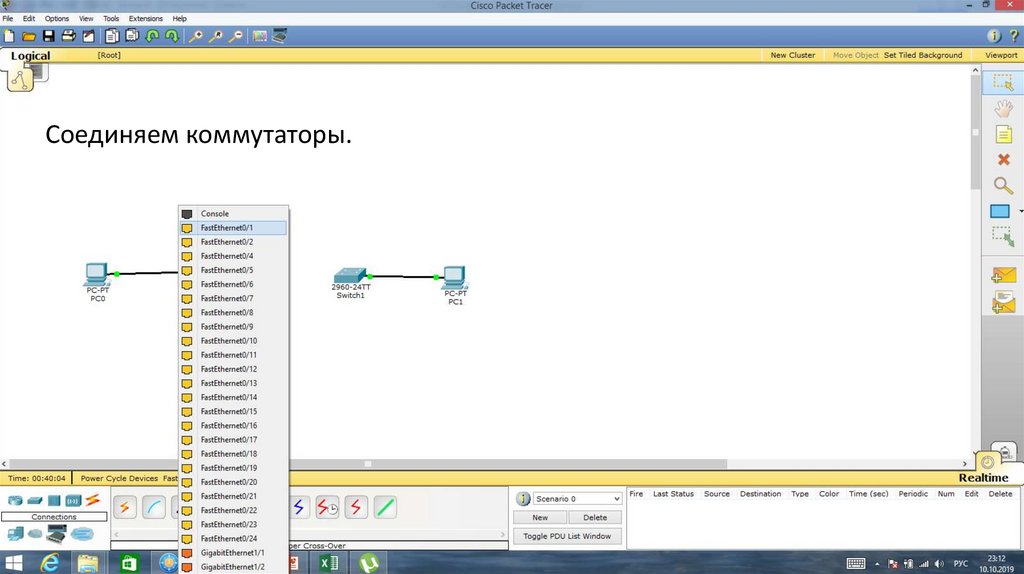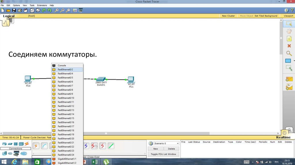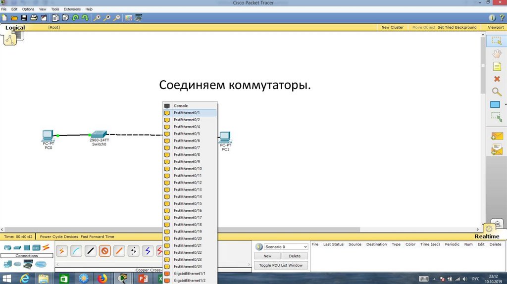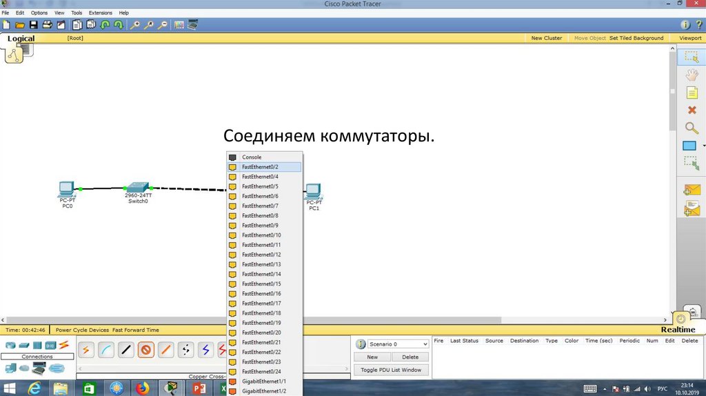 Порт Fa0/1 на Switch0 отключен.23.