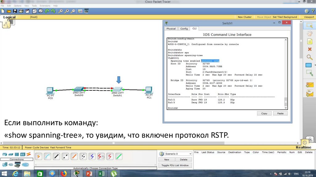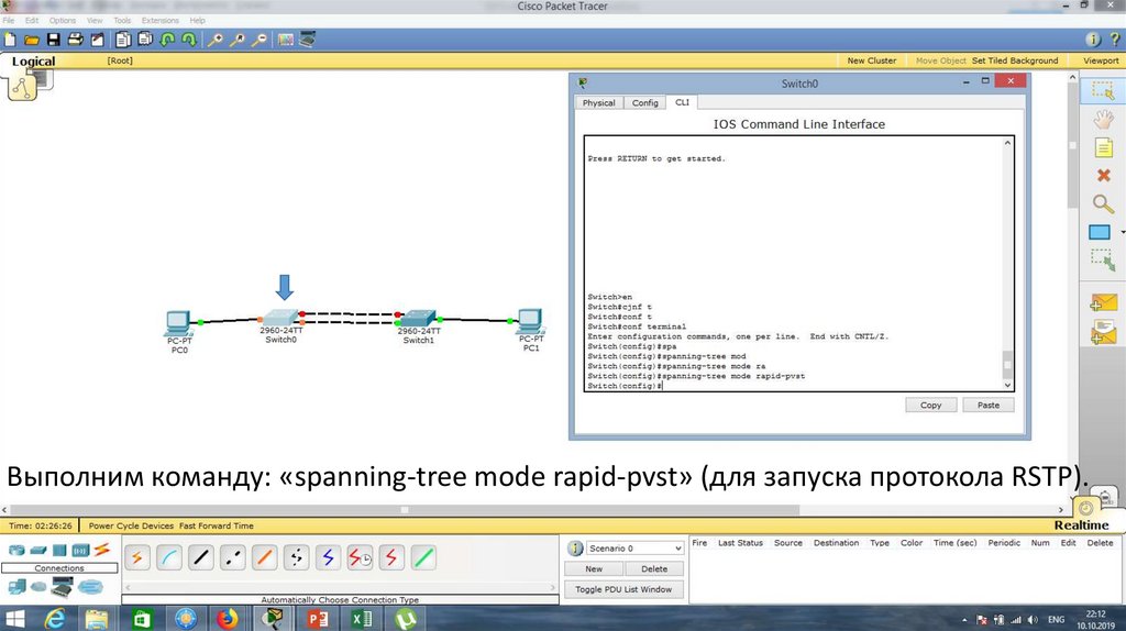 Выполним команду: «spanning-tree mode rapid-pvst» (для запуска протокола RSTP).25.