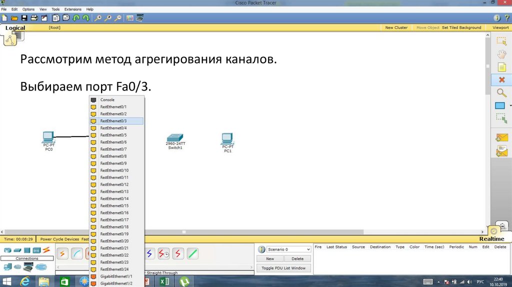 Рассмотрим метод агрегирования каналов.Выбираем порт Fa0/3.