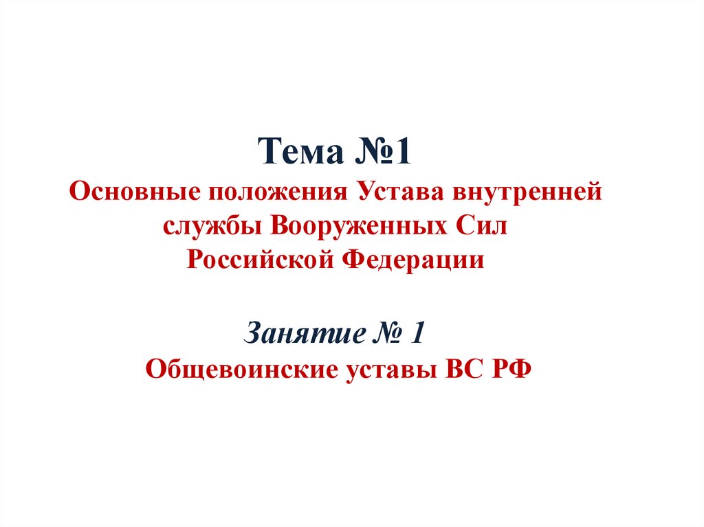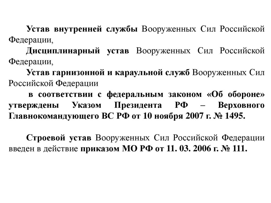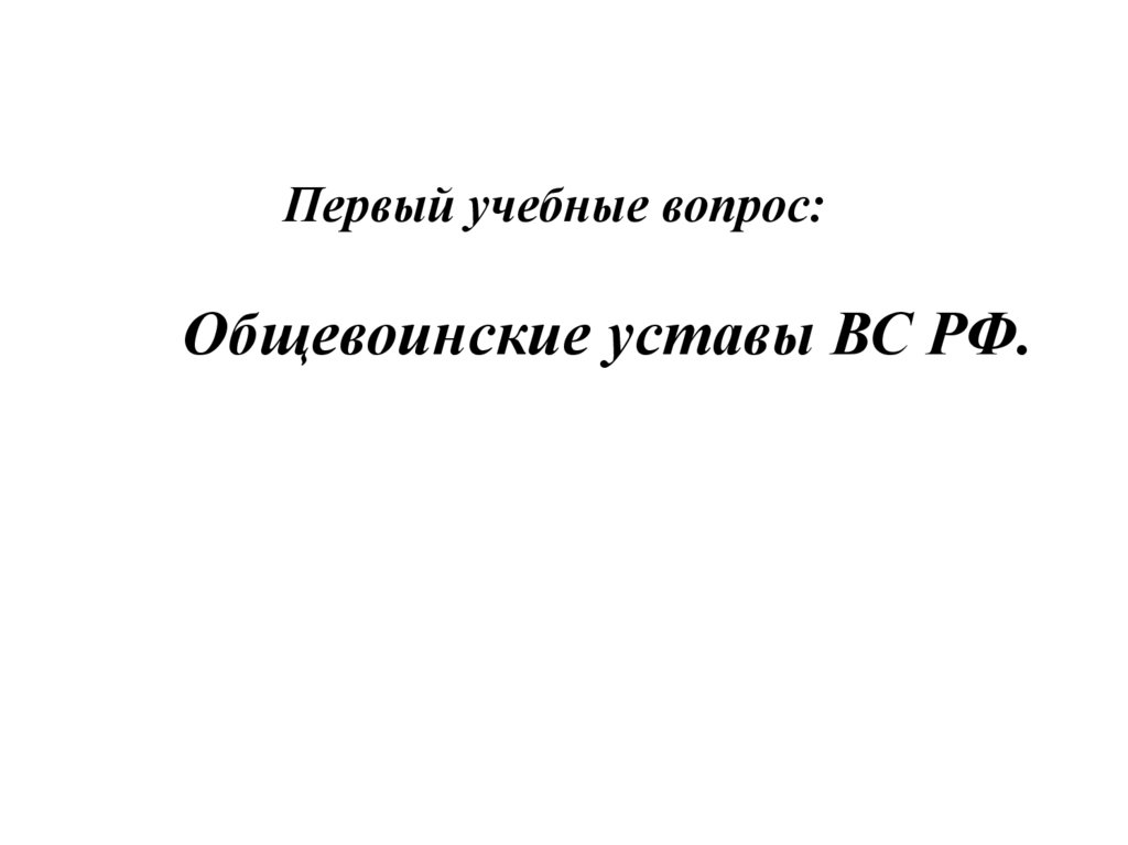 Первый учебные вопрос:Общевоинские уставы ВС РФ.