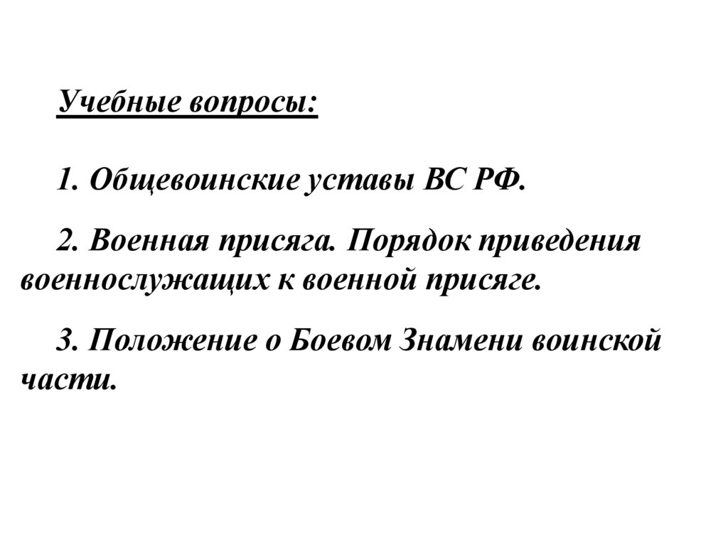 Учебные вопросы:1. Общевоинские уставы ВС РФ.