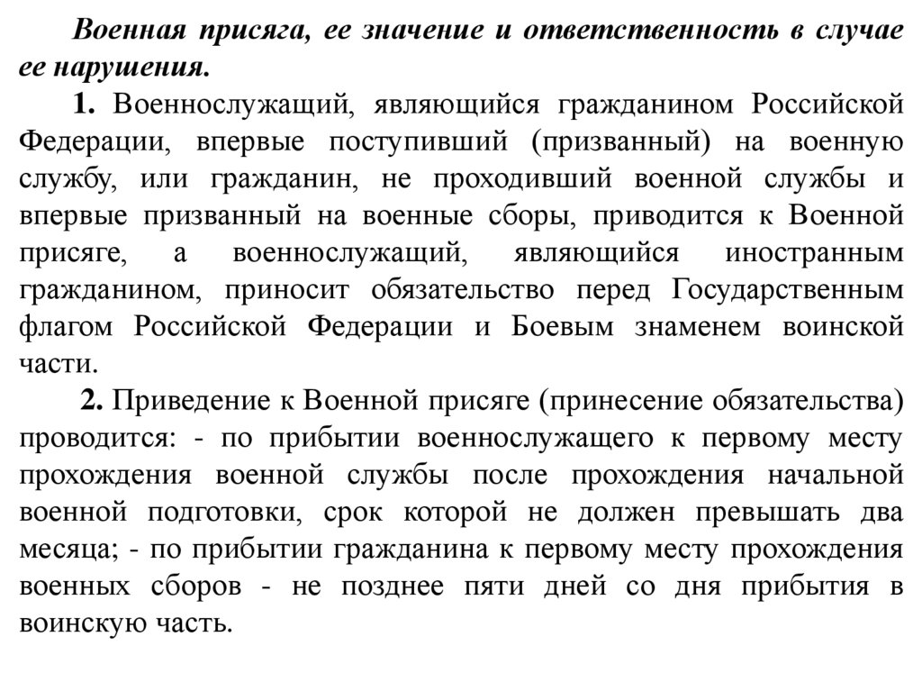 Военная присяга, ее значение и ответственность в случаеее нарушения.