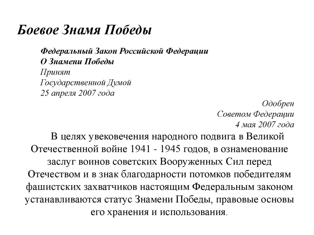 Боевое Знамя ПобедыФедеральный Закон Российской Федерации