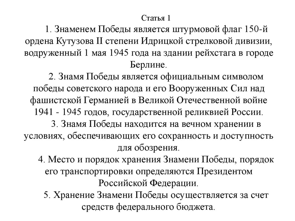 Статья 11. Знаменем Победы является штурмовой флаг 150-й
