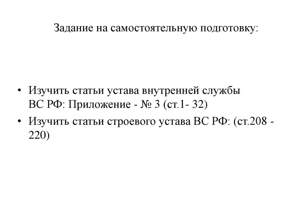 • Изучить статьи строевого устава ВС РФ: (ст.208 220)