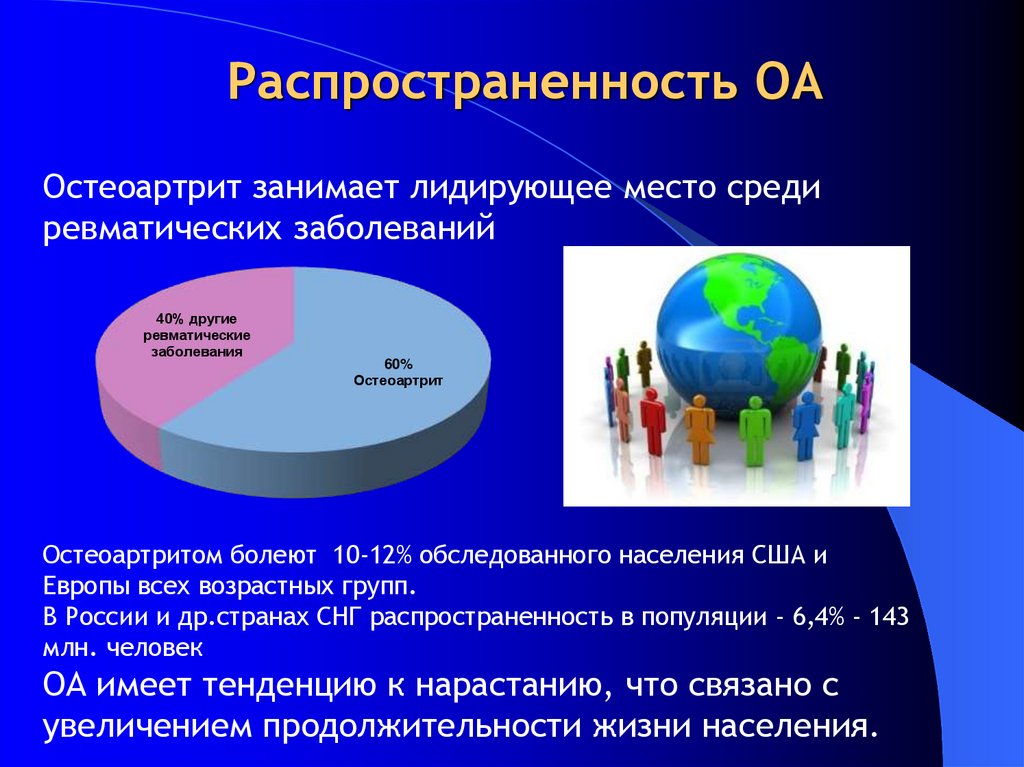 Распространенность ОАОстеоартрит занимает лидирующее место среди
