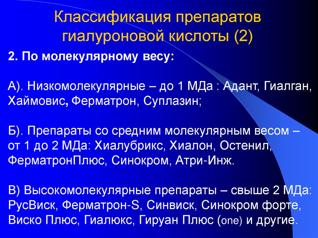 В) Высокомолекулярные препараты – свыше 2 МДа: