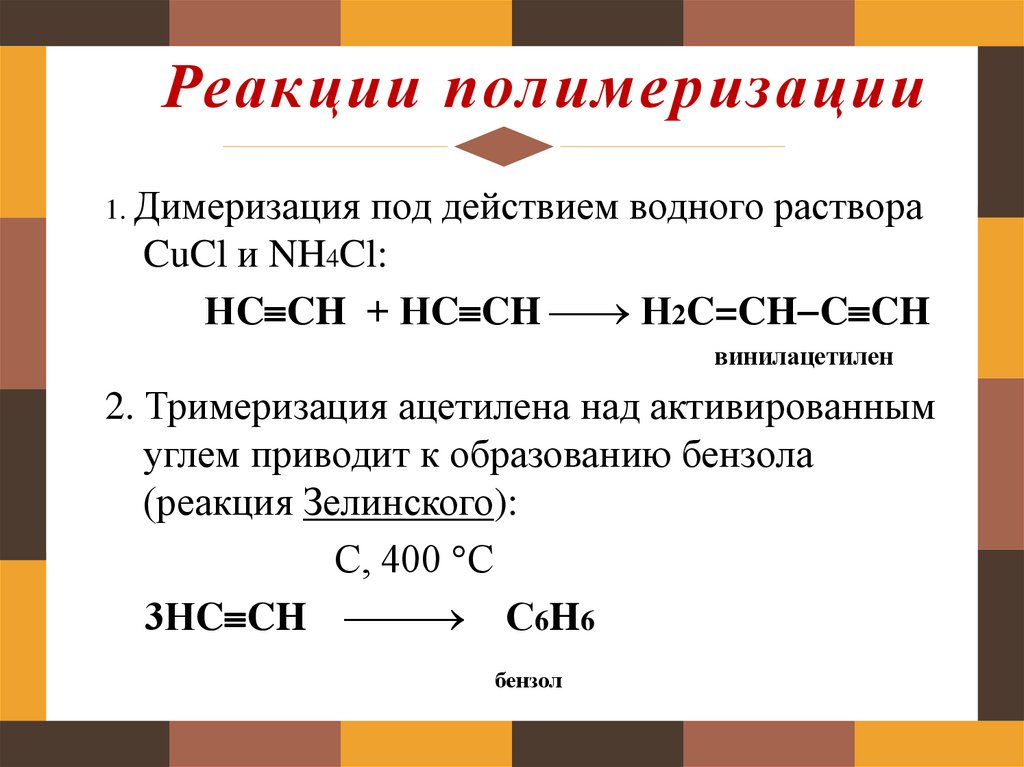 Реакции полимеризации1. Димеризация под действием водного раствора