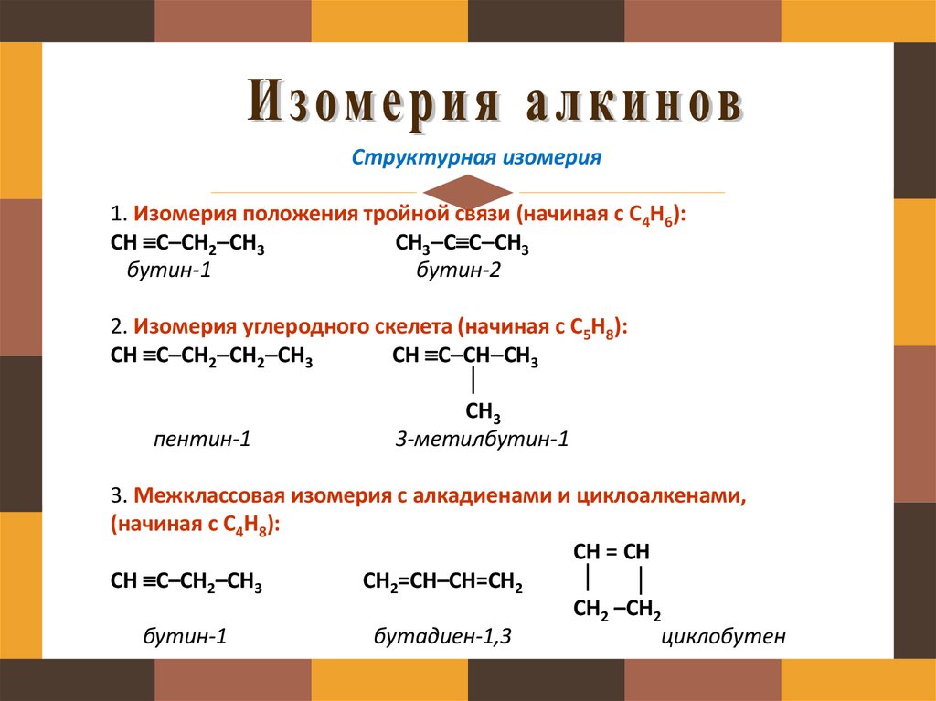 Структурная изомерия1. Изомерия положения тройной связи (начиная с С4Н6):