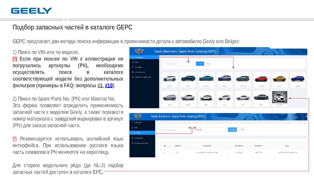 Подбор запасных частей в каталоге GEPCGEPC предлагает два метода поиска информации о применимости детали к автомобилю Geely или Belgee: