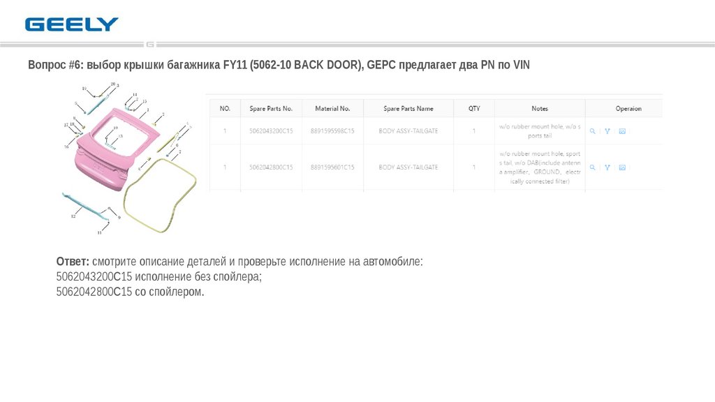 Вопрос #6: выбор крышки багажника FY11 (5062-10 BACK DOOR), GEPC предлагает два PN по VINОтвет: смотрите описание деталей и проверьте исполнение на автомобиле: