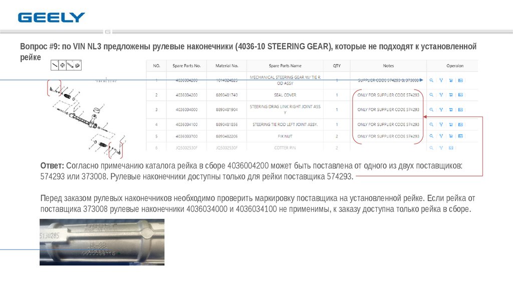 Вопрос #9: по VIN NL3 предложены рулевые наконечники (4036-10 STEERING GEAR), которые не подходят к установленнойрейке