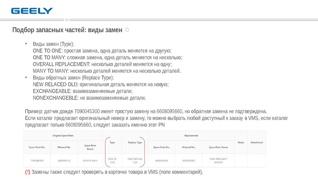 (!) Замены также следует проверять в карточке товара в VMS (поле комментарий).