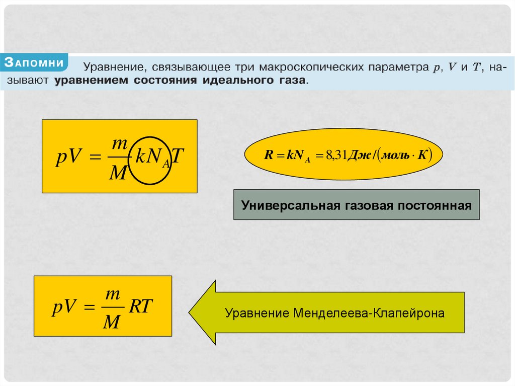 ЗНАТЬ УРАВНЕНИЕ МЕНДЕЛЕЕВА –КЛАЙПЕРОНА,