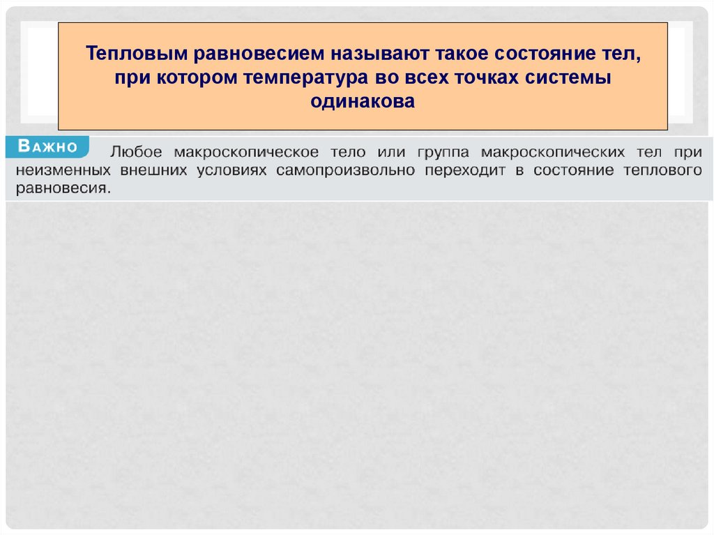 Тепловым равновесием называют такое состояние тел,при котором температура во всех точках системы