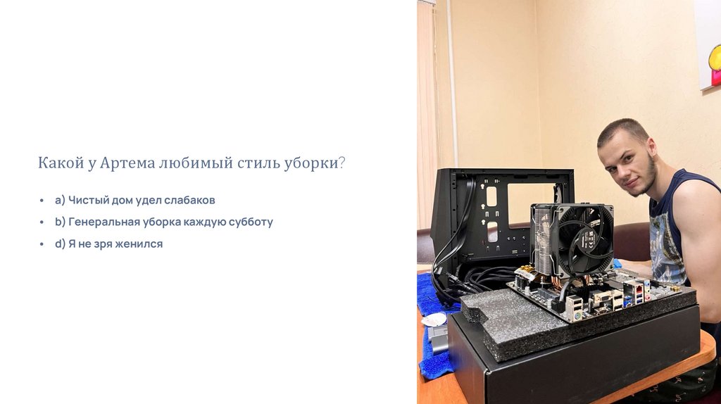 Какой у Артема любимый стиль уборки?• a) Чистый дом удел слабаков