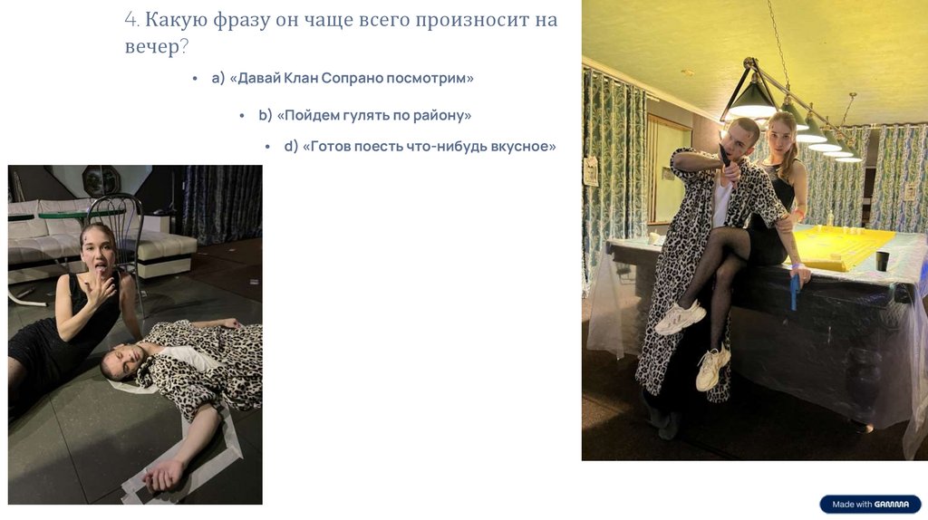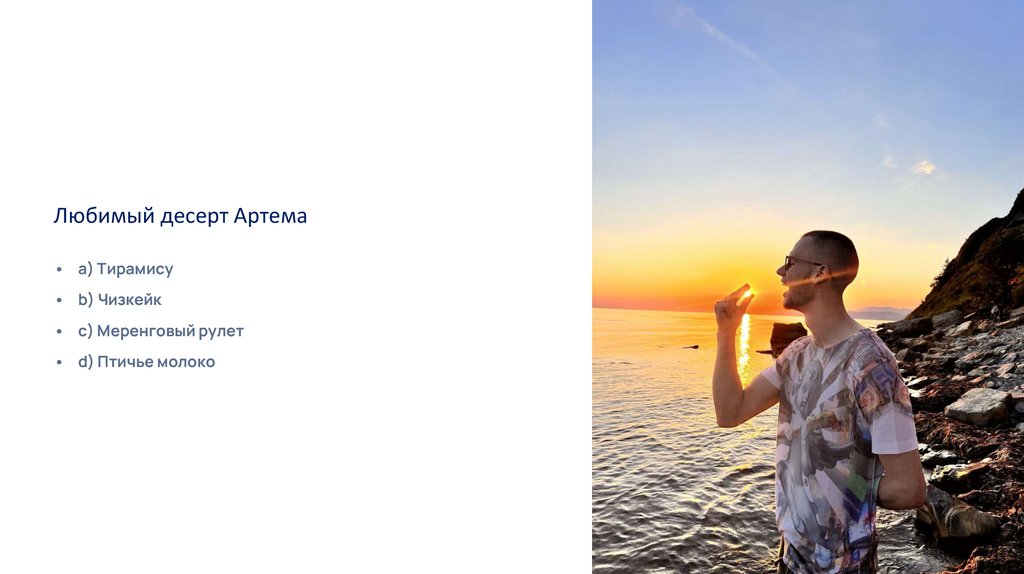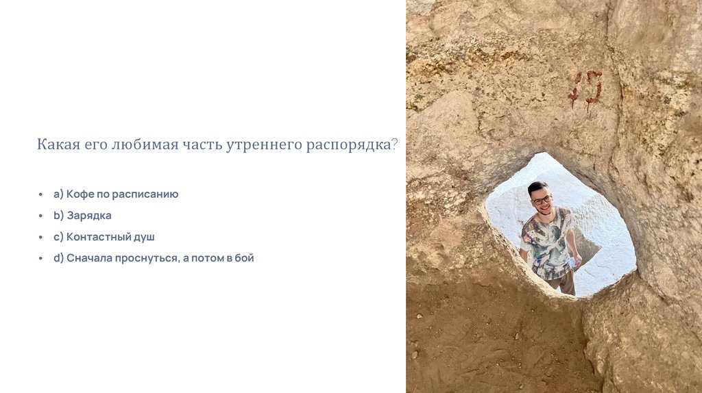 Какая его любимая часть утреннего распорядка?• a) Кофе по расписанию