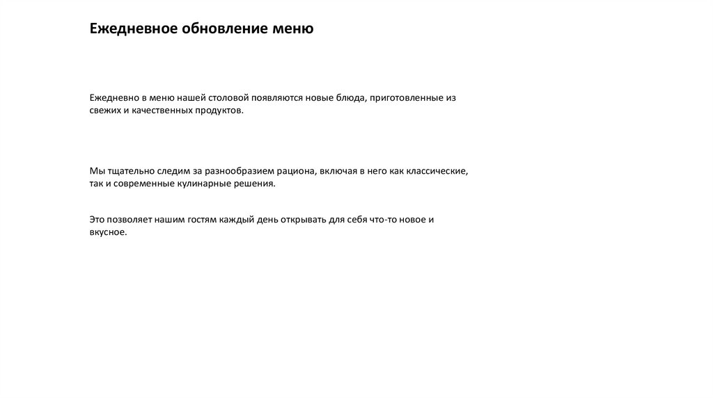 включая ежедневное обновление меню, контроль качества и разнообразие предложений. Мы надеемся, что эта информация
