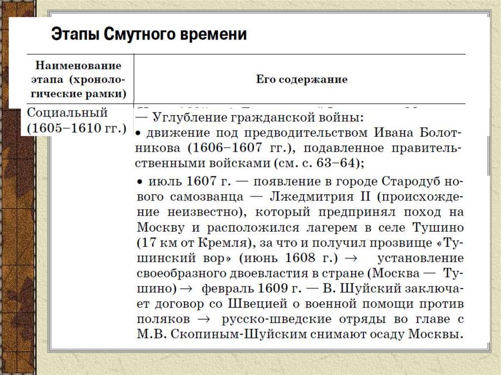 правлением самозванцев, разрушением государственной власти, польско-шведской