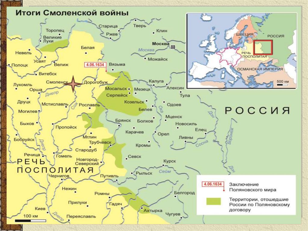 1632–1634 гг. — Смоленская (русско-польская) война1634 г. — подписание Поляновского мирного договора