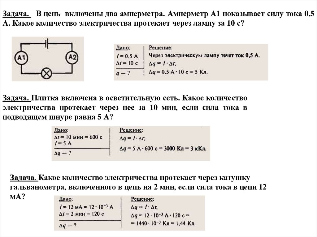 Q – заряд, Кл ( Кулон); t – время, сек.