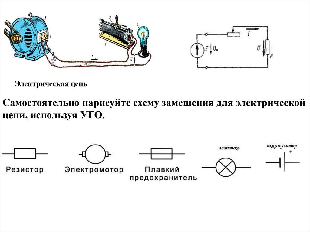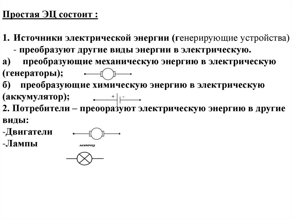 3. Простейшая эл. схема содержит источник электрической энергии, приемник энергии и два линейных провода