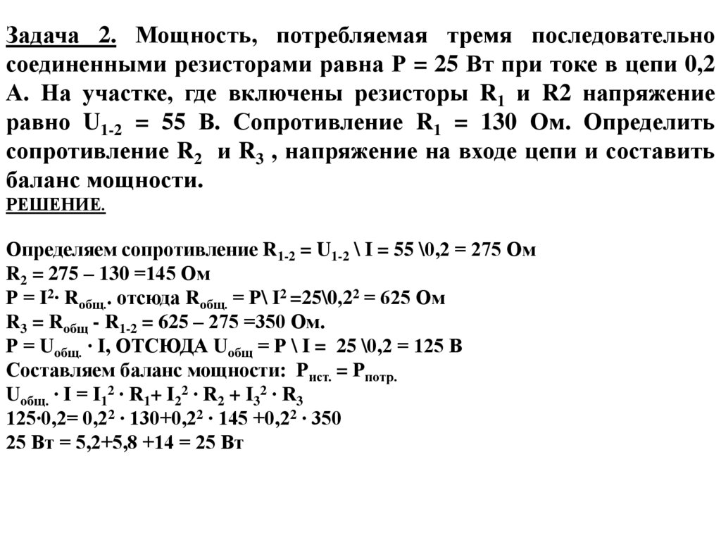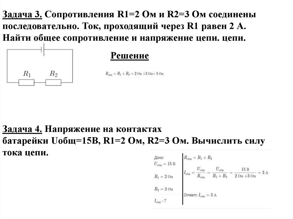 Задача 3. Сопротивления R1=2 Ом и R2=3 Ом соединеныпоследовательно. Ток, проходящий через R1 равен 2 А.