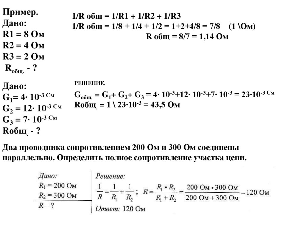 1/R общ = 1/R1 + 1/R2 + 1/R3